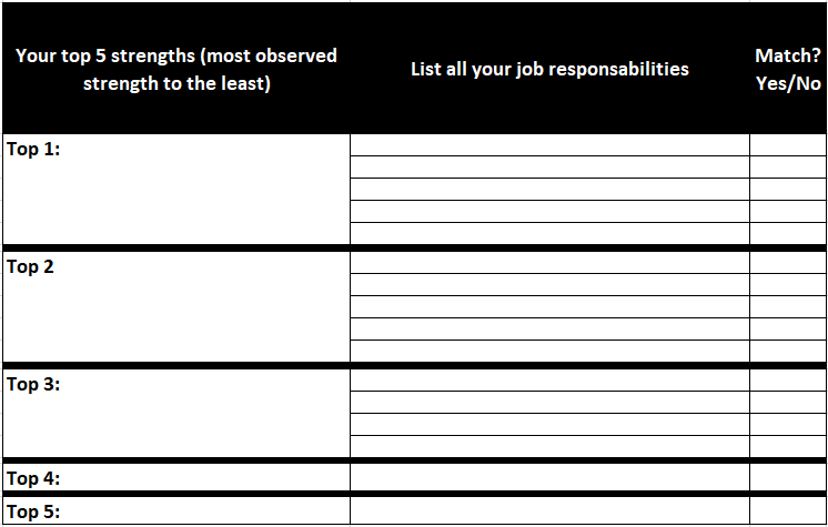 Match your strengths with your current responsibilities: